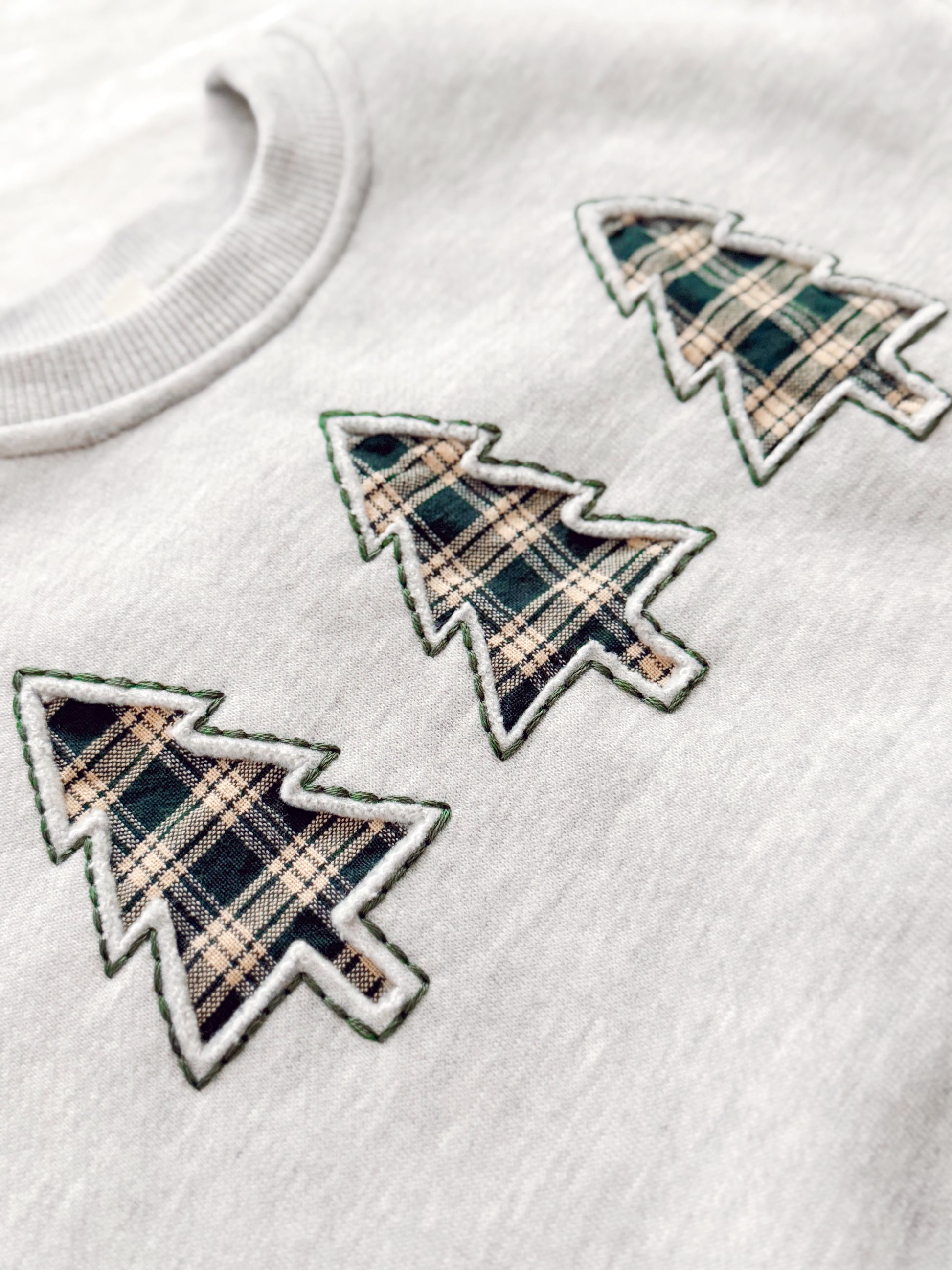 A festive twist on a timeless favorite. Each design is carefully crafted with layered fabric detailing for a cozy, textured look — no two are exactly alike. Choose between three Christmas trees in vintage-inspired green plaid or three stockings in classic red plaid. Soft, simple, and made to bring a touch of handmade holiday charm to your season.