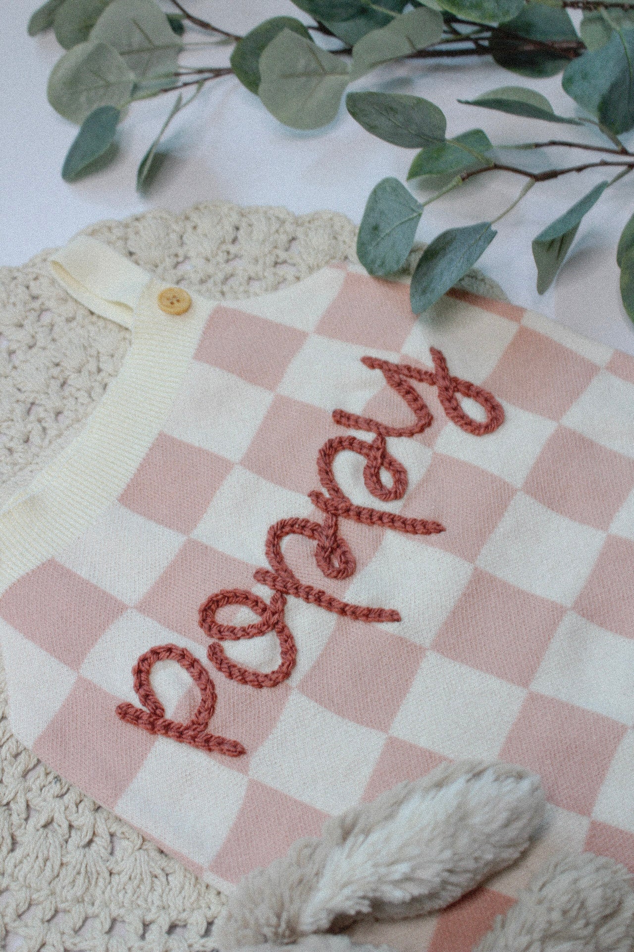 Regular yarn is recommended for names 2-10 characters. Chunky yarn is recommended for names 2-6 characters.